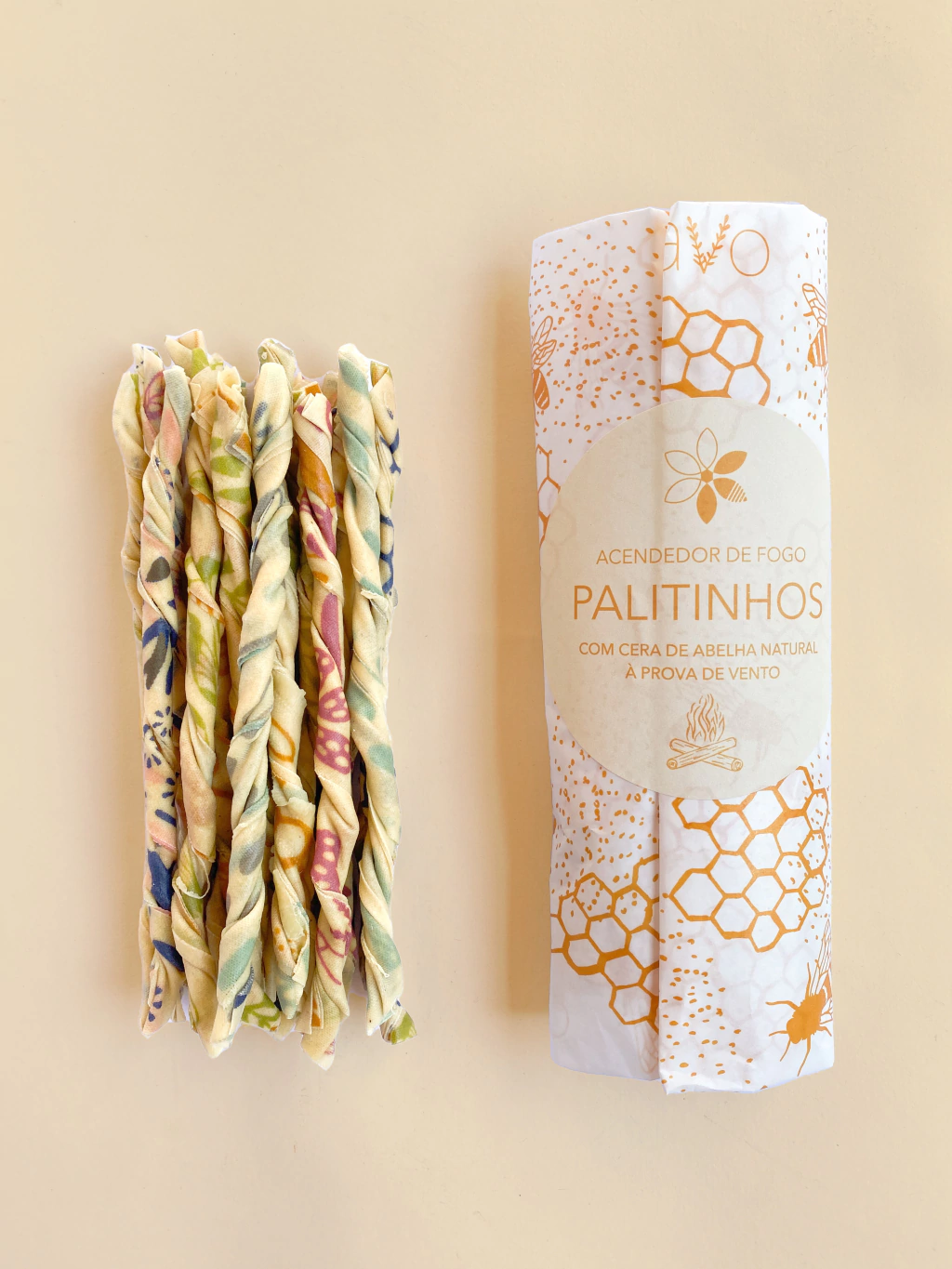 Os Palitinhos são à prova de vento, não produzem brasas, faíscas ou cheiros desagradáveis. São 100% naturais, atóxicos e seguros para serem usados por crianças (supervisionadas) e adultos. Feitos com cera de abelha natural e sobras da produção do Favo, é um produto sustentável e inovador!